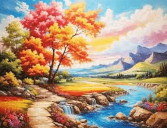 Employing various artistic techniques, such as color theory and brushwork, the artist conveys emotional expression, inviting the audience to experience the landscape’s beauty and depth, transcending the mere representation of nature.